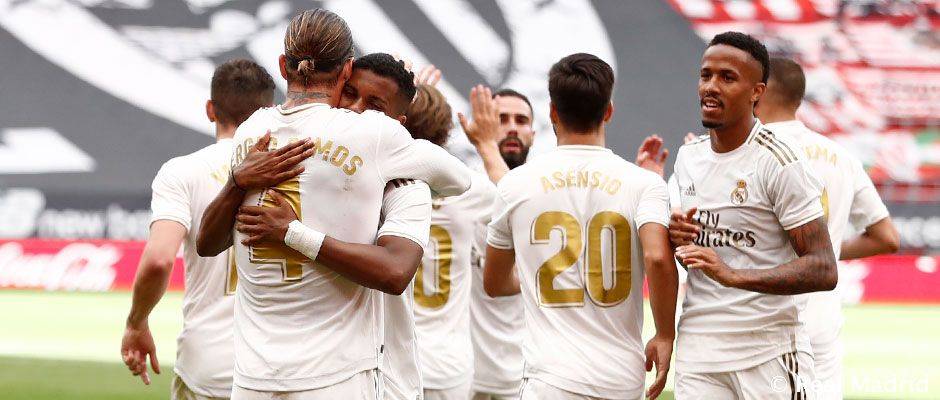 皇马目前领跑西甲积分榜,其中一个很重要的因素就是球队在客场的表现。本赛季,齐达内的球队已经在客场取得了34分,在17场比赛中白衣军团取得了10胜4平。这也要归功于球队出色的防守表现,皇马在客场仅有11粒丢球。进攻端,皇马在客场也有26粒进球入账。 复赛以后,皇马进行了3场客场比赛。第一场皇马在客场2-1击败皇家社会,第二场皇马在客场1-0击败西班牙人,第三场皇马在客场1-0西班牙人。