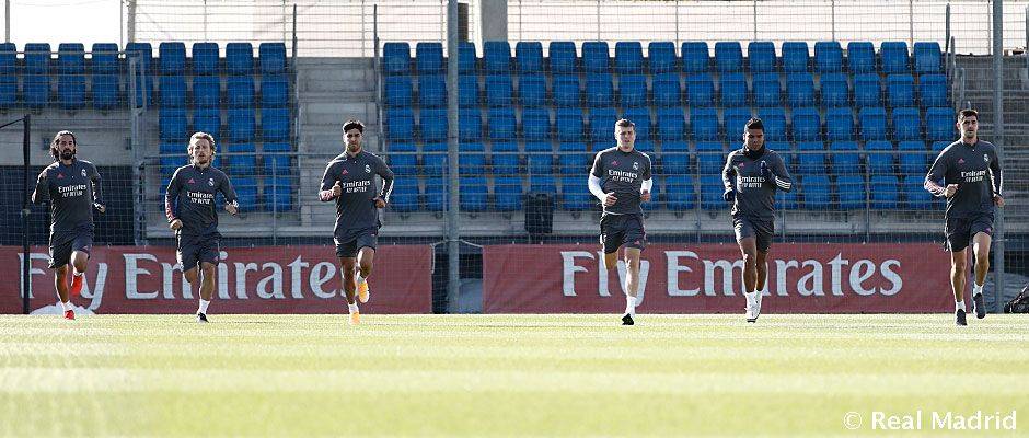 本周,球员们在皇马体育城开始备战新赛季的欧冠比赛。皇马将在北京时间10月22日0:55在主场迎来与顿涅茨克矿工的欧冠小组赛。 参加了本轮西甲的首发球员们进行了恢复性训练,其余球员在场地上进行了射门训练和小型对抗性训练。马里亚诺进行了单人训练,拉莫斯、阿扎尔、卡瓦哈尔和奥德里奥索拉进行了室内力量训练。