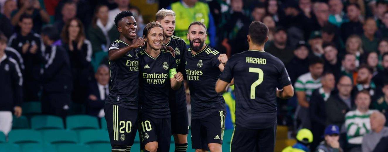 易边再战,第47分钟,凯尔特人前场做出配合,前田大然临门一脚未能打上力量,库尔图瓦侧扑将球没收。第56分钟,巴尔韦德右路送出手术刀妙传,威尼修斯前插推射破网!皇马客场1-0凯尔特人。第60分钟,阿扎尔中路奔袭禁区内横传,莫德里奇闪转腾挪外脚背破门得分!皇马客场2-0领先。第77分钟,克罗斯过顶斜长传精确制导,卡瓦哈尔倒三角回传,阿扎尔门前迎球施射破门!比分变为3-0。第86分钟,尤拉诺维奇小角度威胁打门,库尔图瓦及时作出反应化险为夷。第90分钟,罗德里戈左路带球突破后禁区内攻门打高。最终,凭借威尼修斯、莫德里奇和阿扎尔的破门,皇马客场3-0击败凯尔特人,斩获本赛季欧冠开门红!