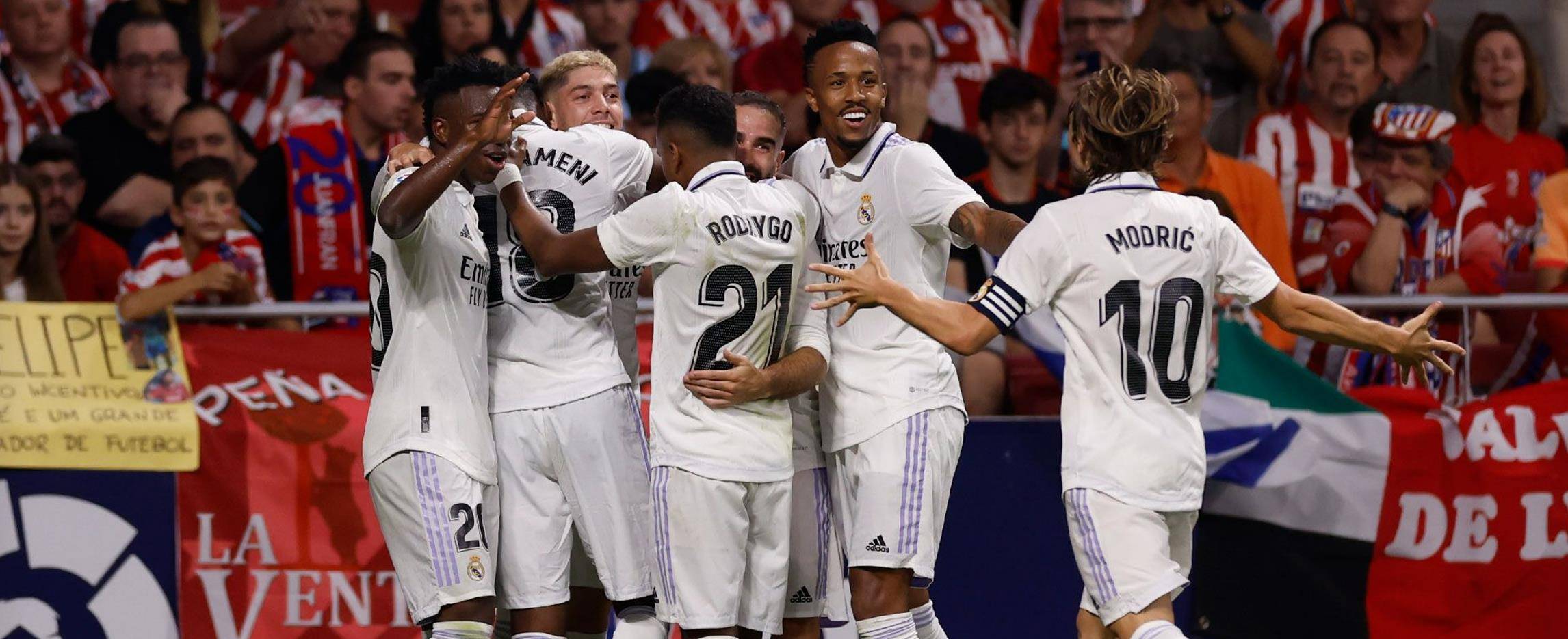 皇马在本轮西甲中客战马德里竞技,最终凭借罗德里戈和巴尔韦德进球,我们在客场全取三分,并将新赛季各项赛事连胜纪录扩大至9场。本场比赛第13分钟,马竞角球机会,库尔图瓦出击解围不远,菲利克斯威胁补射,克罗斯利用背部将球挡出。第18分钟,楚阿梅尼中路挑传,罗德里戈前插不停球直接打门得手!皇马客场1-0马竞。第25分钟,格列兹曼外围远射被库尔图瓦拒之门外。第26分钟,皇马发动反击,魔笛送出直塞,罗德里戈尝试小角度打门被对方防守破坏。第36分钟, 魔笛左路送出直塞,威尼修斯切入禁区小角度打门中柱弹出,巴尔韦德拍马赶到补射破网!比分被扩大为2-0。第40分钟,卡拉斯科带球突破后的威胁打门被库尔图瓦化解。第42分钟,德保罗外围尝试远射,皮球被库尔图瓦稳稳拿住。
