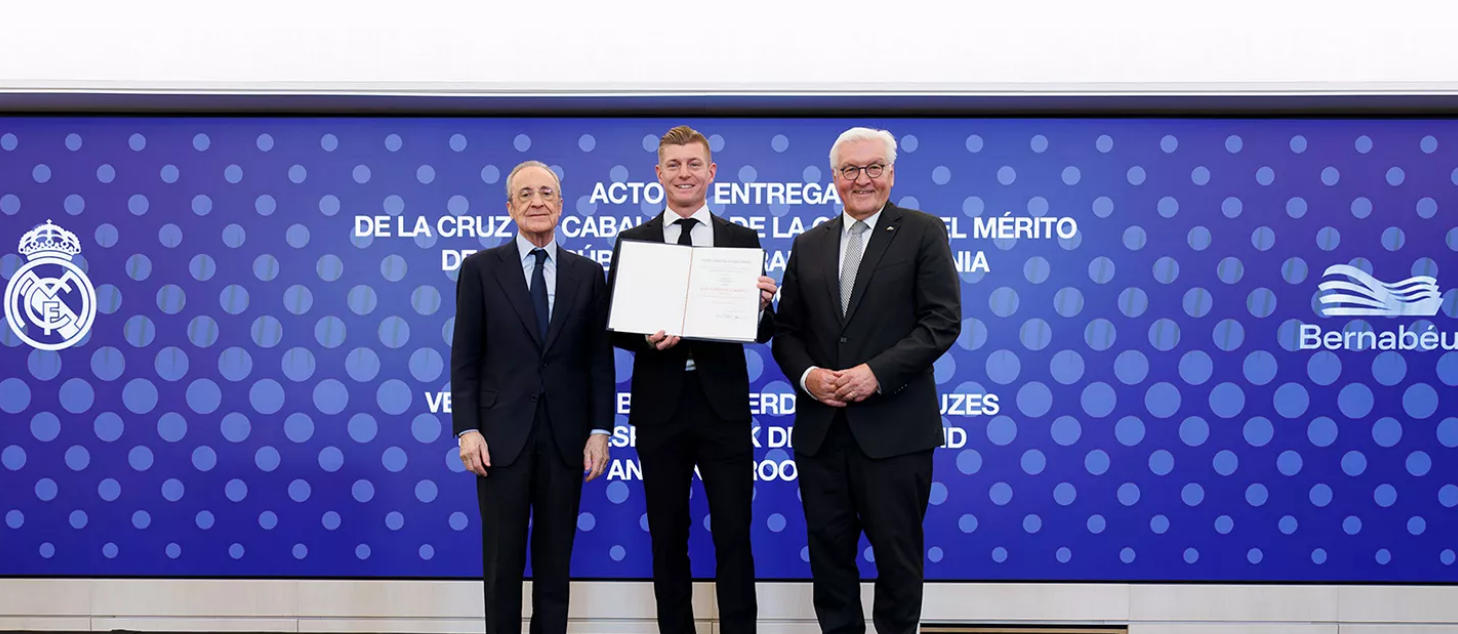 克罗斯在伯纳乌的荣誉包厢接受了德国联邦功绩十字勋章
