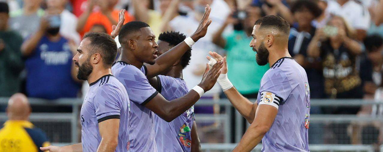 本泽马点射阿笑破门,皇马季前赛收官战2-0尤文图斯