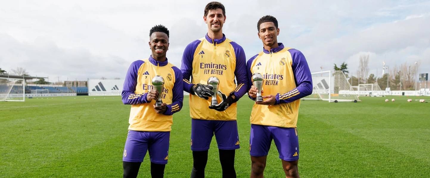 威尼修斯、库尔图瓦、贝林厄姆展示了FIFA最佳阵容奖杯