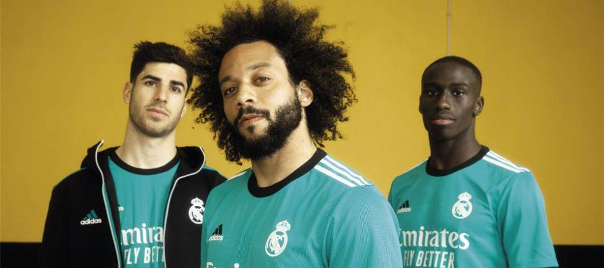 皇马新赛季的二客球衣目前已经发布。球衣身前是皇马队徽和赞助商标志,阿迪达斯经典的三道杠图案被设计在了肩处。球衣的领口采用黑色配色,并配以圆领设计。该球衣的设计灵感来自于马德里的太阳神广场(Puerta del Sol)。