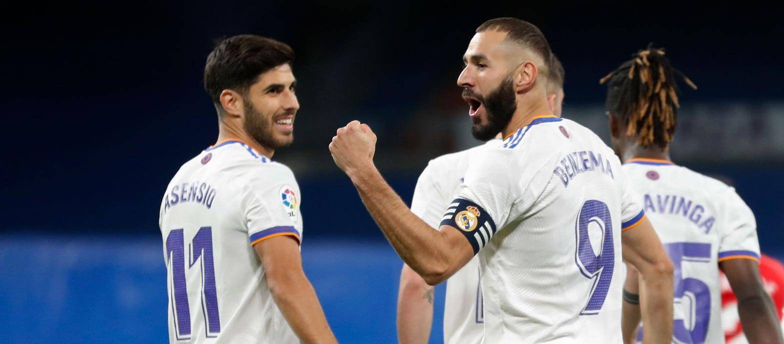 6-1:本泽马双响阿笑戴帽,皇马大胜马略卡本轮西甲中,皇马在主场迎战升班马马略卡,皇马取得了6球大胜,此役过后,白衣军团取得5胜1平排在西甲积分榜首。本场比赛双方互有攻守,本泽马在第3分钟便帮助皇马取得梦幻开局。马略卡后卫加亚在后场停球失误,本泽马抓住机会突入禁区打门得手,1-0,皇马早早取得了领先。第7分钟,阿森西奥开出右侧角球,皮球直接划向球门,对方门将被迫做出扑救。