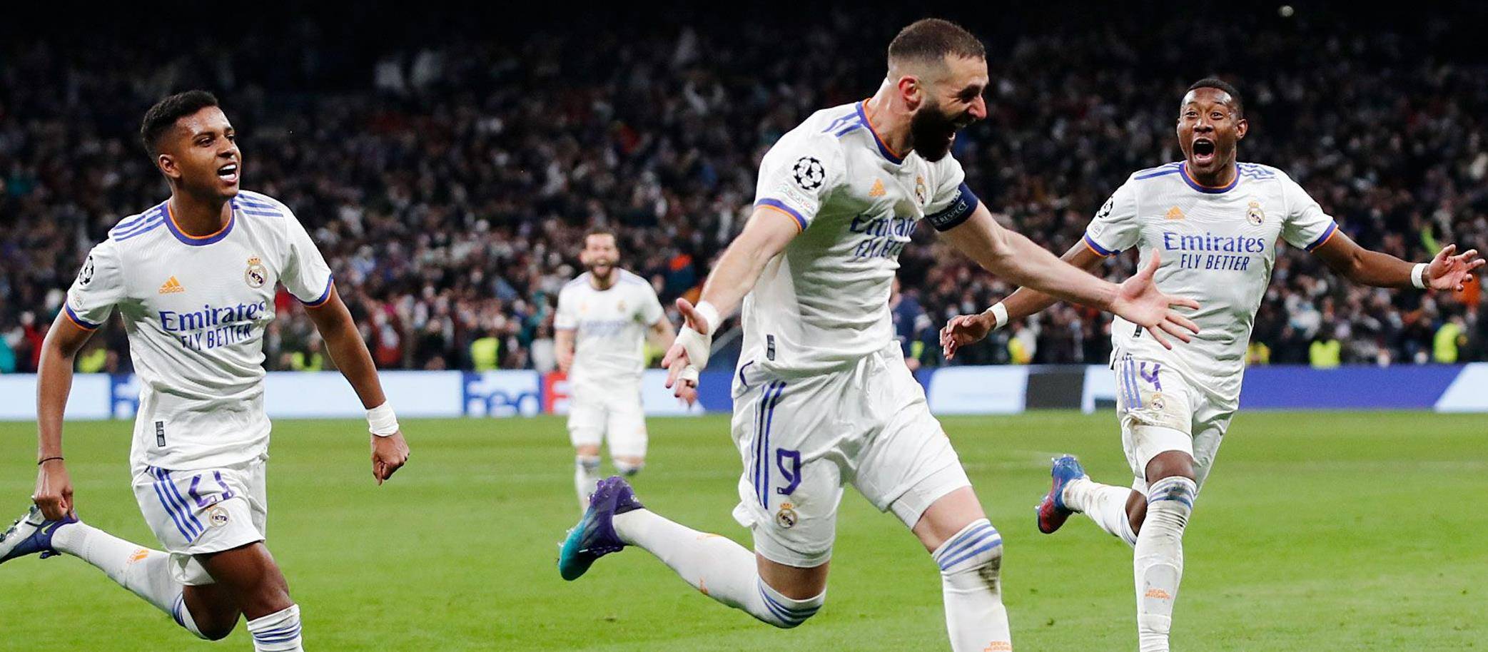 本泽马帽子戏法,皇马总比分3-2逆转巴黎晋级八强本轮欧冠1/8决赛次回合,皇马在主场对阵巴黎圣日耳曼,尽管首回合0-1负于对手,但白衣众将依然对逆转充满信心。本场比赛,第4分钟,威尼修斯左路底线倒三角回传,阿森西奥的打门弹地后被解围。第5分钟,卡瓦哈尔左路对姆巴佩做出关键防守。第12分钟,卡瓦哈尔外围尝试远射偏出左侧立柱。第22分钟,内马尔推射制造威胁,库尔图瓦侧扑救险。第25分钟,本泽马外围弧线球兜射远角,偏出右侧立柱,差之毫厘。几分钟后,梅西右路斜传,卡瓦哈尔中路做出关键拦截。第31分钟,梅西门前小角度挑射,库尔图瓦及时封堵,纳乔门前将球解围出界。第34分钟,姆巴佩破门,经VAR裁判确认后判定越位,比分仍为0-0。第37分钟,克罗斯斜传制导,本泽马高高跃起头球顶偏。第39分钟,姆巴佩破门,皇马暂时0-1落后巴黎。