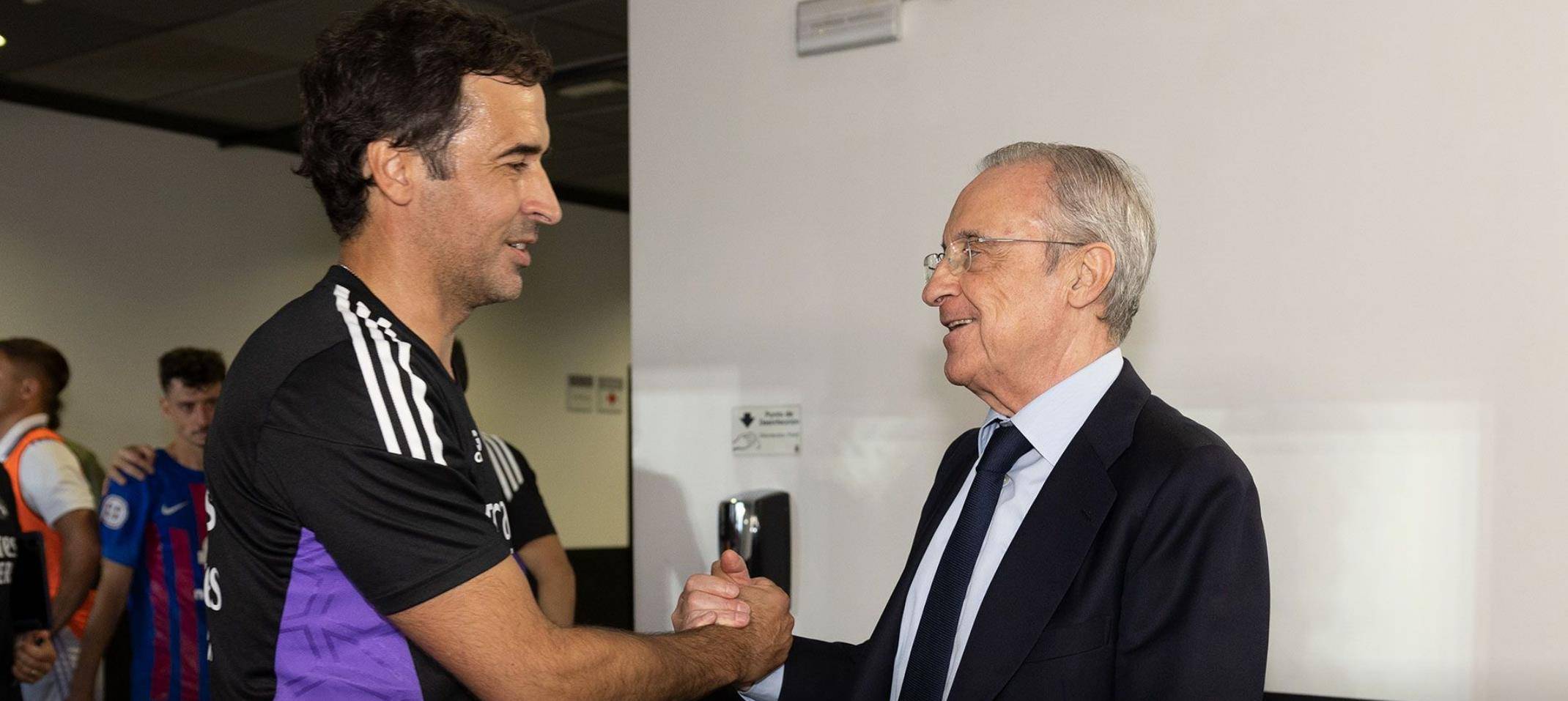在西协甲升级附加赛决赛首回合赛后,皇马主席弗洛伦蒂诺来到迪斯蒂法诺球场探望了卡斯蒂亚全队。主席先生先是称赞了卡斯蒂亚全队的努力与付出,并祝愿他们在次回合好运。最终的胜者将在新赛季获得西乙资格。
