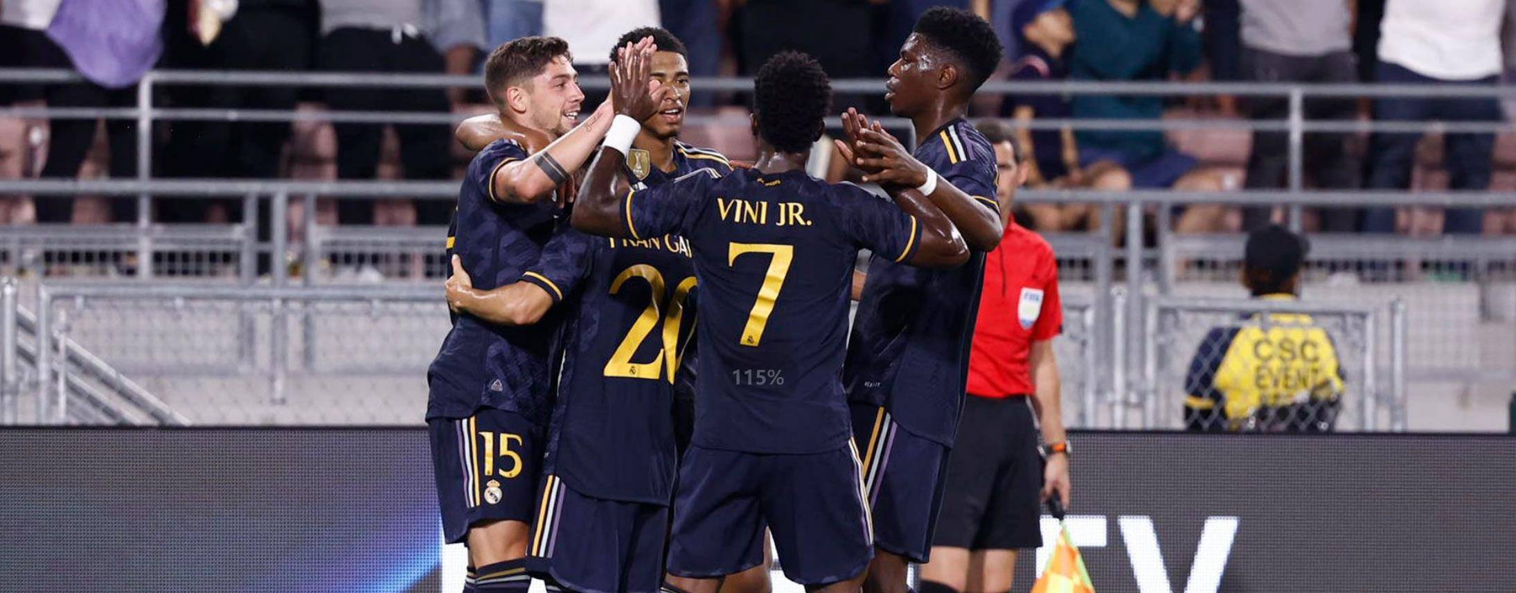 北京时间7月24日10:00,季前赛热身赛首场打响,皇马对阵AC米兰。上半场我们0-2落后,但凭借下半场巴尔韦德的梅开二度和威尼修斯的进球,我们最终3-2逆转对手。本场比赛第6分钟,巴尔韦德外围尝试一脚远射,皮球发生折射后被对方门将扑出底线;随后皇马战术角球开出,巴尔韦德外围再度完成一脚极具威胁的推射,稍稍偏出。第13分钟,卜拉欣横向带球送出身后直塞,何塞卢前插,但皮球被对方门将率先拿到。第22分钟,贝林厄姆和卜拉欣完成精彩踢墙配合,随后贝林厄姆打门被对方后卫挡出。第25分钟,托莫里头球破门,皇马暂时0-1落后。第38分钟,贝林厄姆头球回做米利唐禁区内抽射被挡出。第42分钟,AC米兰再度破门,我们0-2落后。