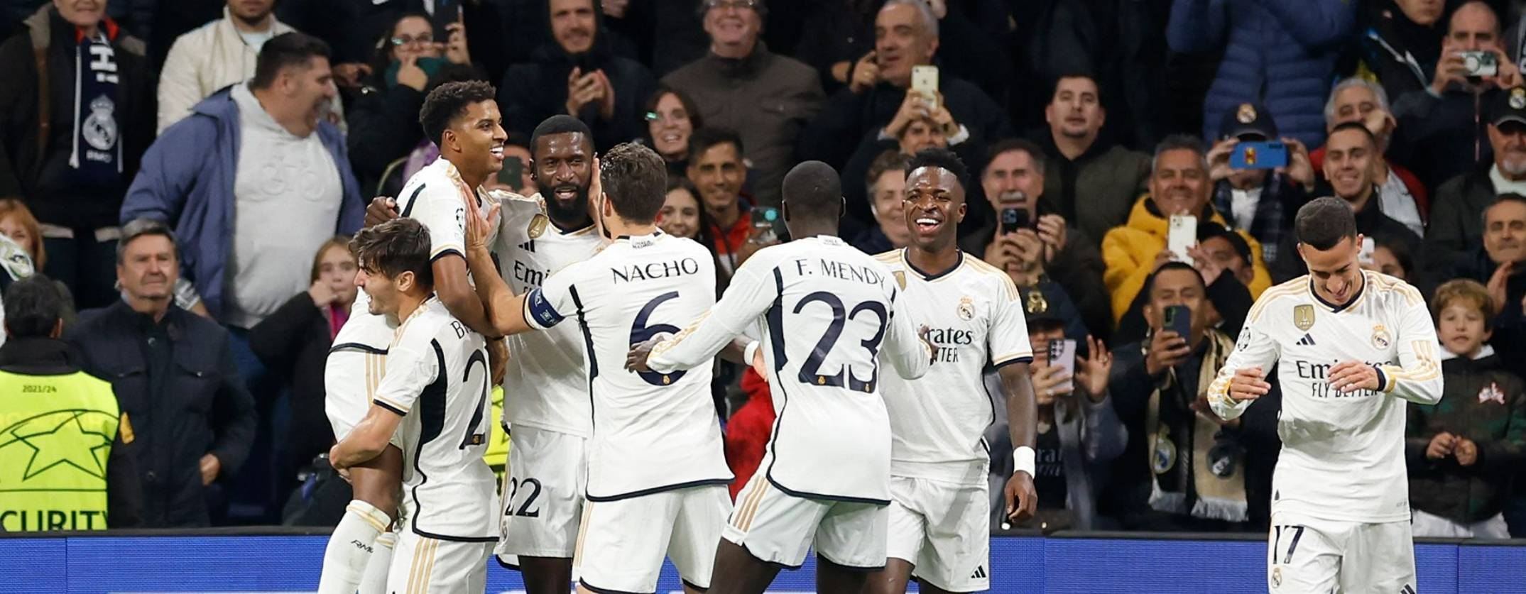 提前小组出线,皇马3-0战胜布拉加本轮欧冠比赛,皇马主场迎战布拉加,卢宁神勇扑点,卜拉欣、罗德里戈、威尼修斯分别进球,最终我们在主场拿到3分并提前出线。第6分钟,裁判认定巴斯克斯禁区内拉人,布拉加获得点球,但对方球员的罚球被卢宁神勇扑出!!第12分钟,皇马前场上抢,把球给到禁区,跟上的卜拉欣一脚打门,但裁判判罚威尼修斯在禁区内犯规在先,进球取消。第18分钟,卡马温加上抢断球分给中路的巴尔韦德,后者一脚远射,皮球打在对方球员腿上弹出底线。第26分钟,罗德里戈倒三角回传,卜拉欣左脚爆射破门!!!第42分钟,罗德里戈小角度打门,球被对方门将没收。