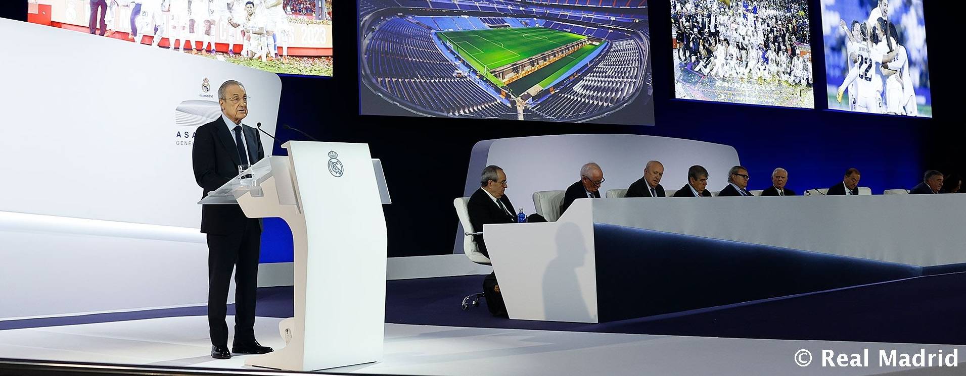 「新伯纳乌」我们即将看到我们一个伟大梦想的实现。我想指出的第一件事是,是所有人的共同努力促成了这一切。新球场的发展归功于所有俱乐部成员和球迷们的理解,尽管如此规模的项目存在不便,但他们仍然支持我们的球队完成这一最宏大、最复杂的建筑项目之一。