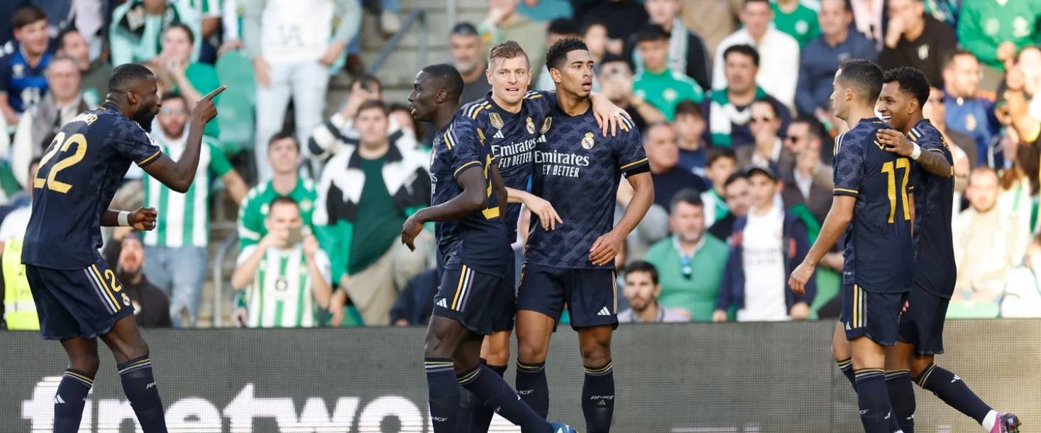 易边再战,第51分钟,卢宁化解伊斯科包抄铲射。第53分钟,卜拉欣挑传禁区,贝林厄姆胸部停球后推射远角破门!!!皇马客场1-0领先。第58分钟,罗德里戈左路连续突破下底小角度打门偏出。第66分钟,鲁伊瓦尔一记世界波帮助贝蒂斯扳回一城,比分1-1。第79分钟,克罗斯主罚小角度任意球直接攻门被门将扑出。第91分钟,罗德里戈禁区内横敲,何塞卢低平球推射擦柱而出。最终,双方都未能将比分改写,皇马客场1-1战平贝蒂斯。