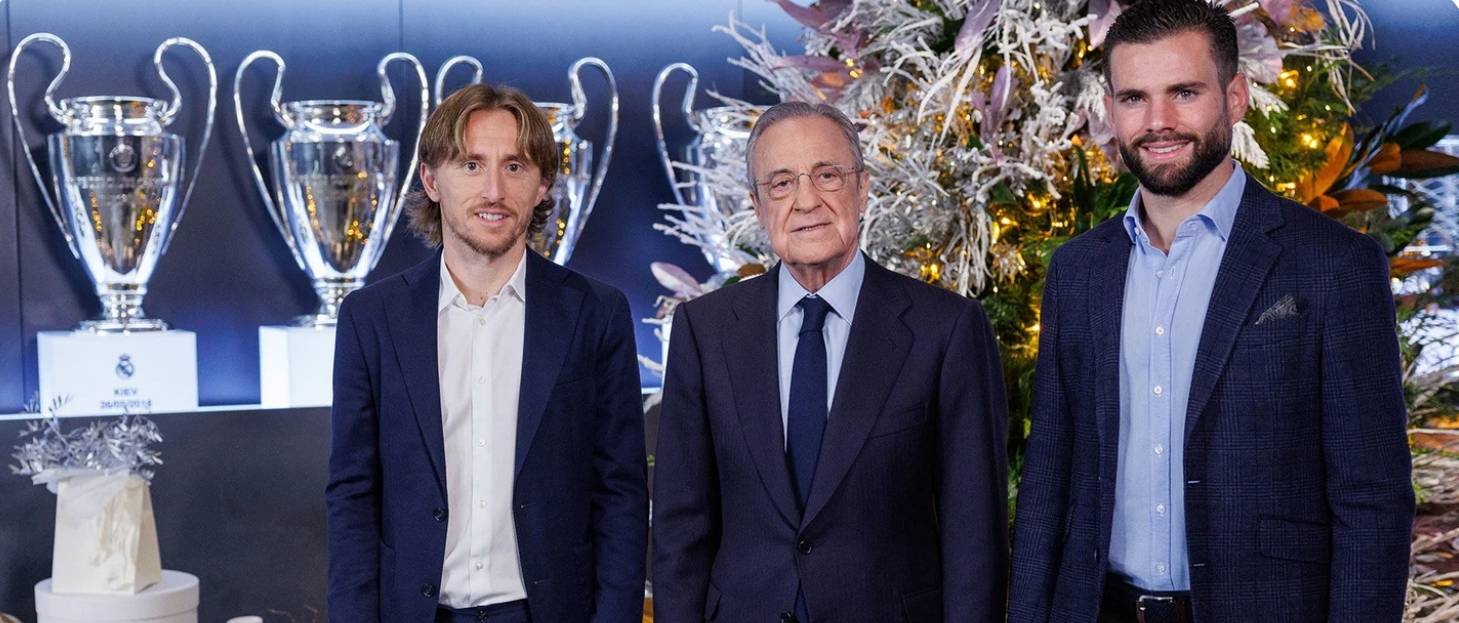 弗洛伦蒂诺·佩雷斯、安切洛蒂、丘斯·马特奥、托里尔、纳乔、莫德里奇、卢尔、鲁迪、伊万娜和肯蒂·罗布莱斯共同主演了皇家马德里传统的圣诞宴会。在充满成功的一年后,俱乐部主席、教练组和三支球队的队长向马德里球迷致以节日的祝福,并寄予了他们对2024年的最美好祝愿。