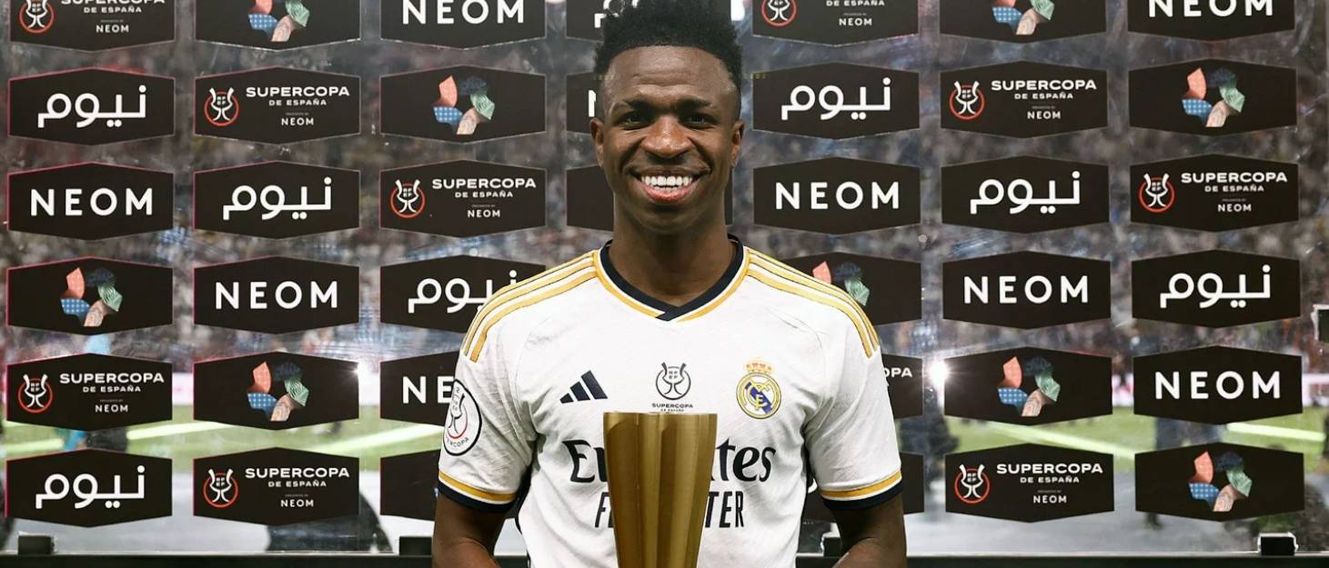 威尼修斯:我对帽子戏法、进球和胜利都感到开心在西超杯决赛中,皇马4-1击败巴萨成功夺得冠军,本场比赛依靠威尼修斯的帽子戏法和罗德里戈的进球,白衣军团最终成功捧杯。威尼修斯在赛后接受了采访:“我为冠军感到开心,也很幸运自己能上演帽子戏法。我想感谢所有皇马的工作人员、队友、教练和技术团队,他们给了我极大的帮助,让我能够保持专注和冷静。我还没有达到最佳状态,因为伤愈后我只踢了几场比赛,但我为今天的表现开心。”