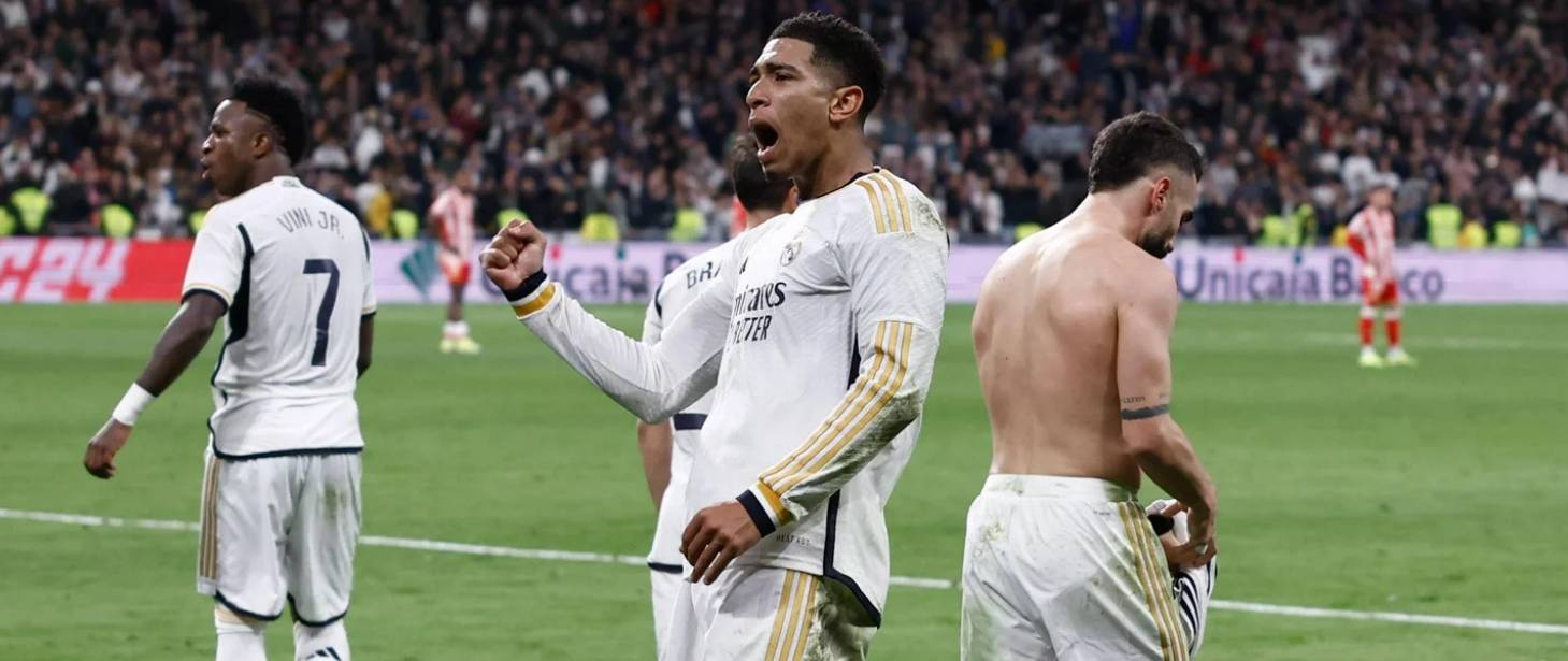 易边再战,第57分钟,对方球员禁区内手球,贝林厄姆打进关键点球,1-2!第61分钟,阿尔梅里亚再次进球,因对方球员犯规在先进球无效,比分仍然是1-2。第67分钟,楚阿梅尼传中将球给到禁区中路,球门前的威尼修斯用肩部将球顶进,2-2,扳平比分。第77分钟,贝林厄姆兜射破门因弗兰·加西亚越位在先被判无效。第81分钟,克罗斯将球挑传至禁区,卜拉欣一对一面对门将错失机会,威尼修斯后点补射被封堵。第83分钟,贝林厄姆在禁区内做出舒展倒钩动作,皮球稍偏出右侧门柱。第99分钟,贝林厄姆头球摆渡助攻,卡瓦哈尔前插绝杀比赛,皇马3-2取得领先!最后,凭借贝林厄姆、威尼修斯和卡瓦哈尔的进球,皇马在主场实现大逆转,全取三分。