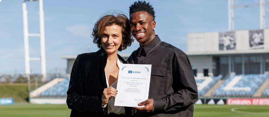 威尼修斯被选为联合国教科文组织(Unesco)全民教育的亲善大使。Unesco总监奥德丽·阿祖莱在一场活动中为这位巴西球员颁发了这一荣誉,该活动在皇马体育城举行,皇家马德里的机构关系总监埃米利奥·布特拉格诺也出席了活动。 威尼修斯因其“致力于促进所有人获得优质教育的承诺而受到表彰,他作为一名积极参与教育活动的足球运动员所发挥的杰出而鼓舞人心的作用,以及对该组织理想的捍卫和推动”。