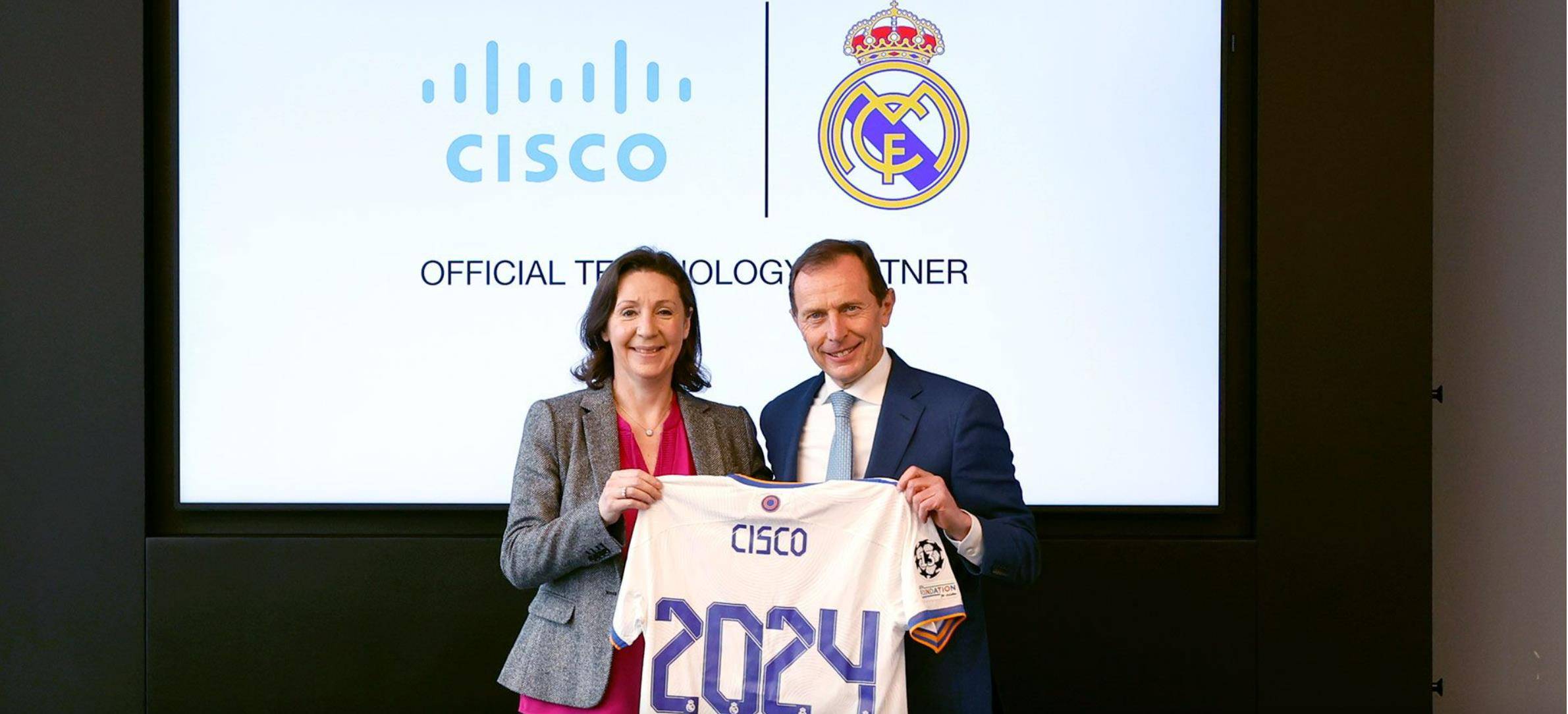 思科系统,皇马在综合技术领域的新赞助商皇家马德里与思科系统(Cisco)达成合作协议,双方将共同致力于将圣地亚哥·伯纳乌球场打造成世界最先进的体育场馆而努力。签约仪式在皇马体育城进行,皇马公关部主席布特拉格诺和思科主席温迪·马尔斯共同出席。