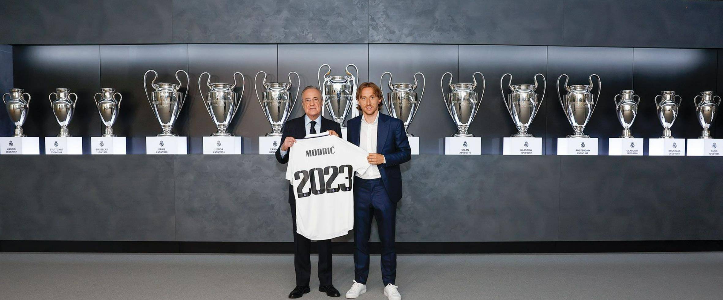 莫德里奇在皇马体育城与俱乐部签订了续约合同,皇马主席弗洛伦蒂诺陪同出席。克罗地亚人的合同延续至了2023年6月30日。续约仪式后,老佛爷为他送上了纪念球衣。