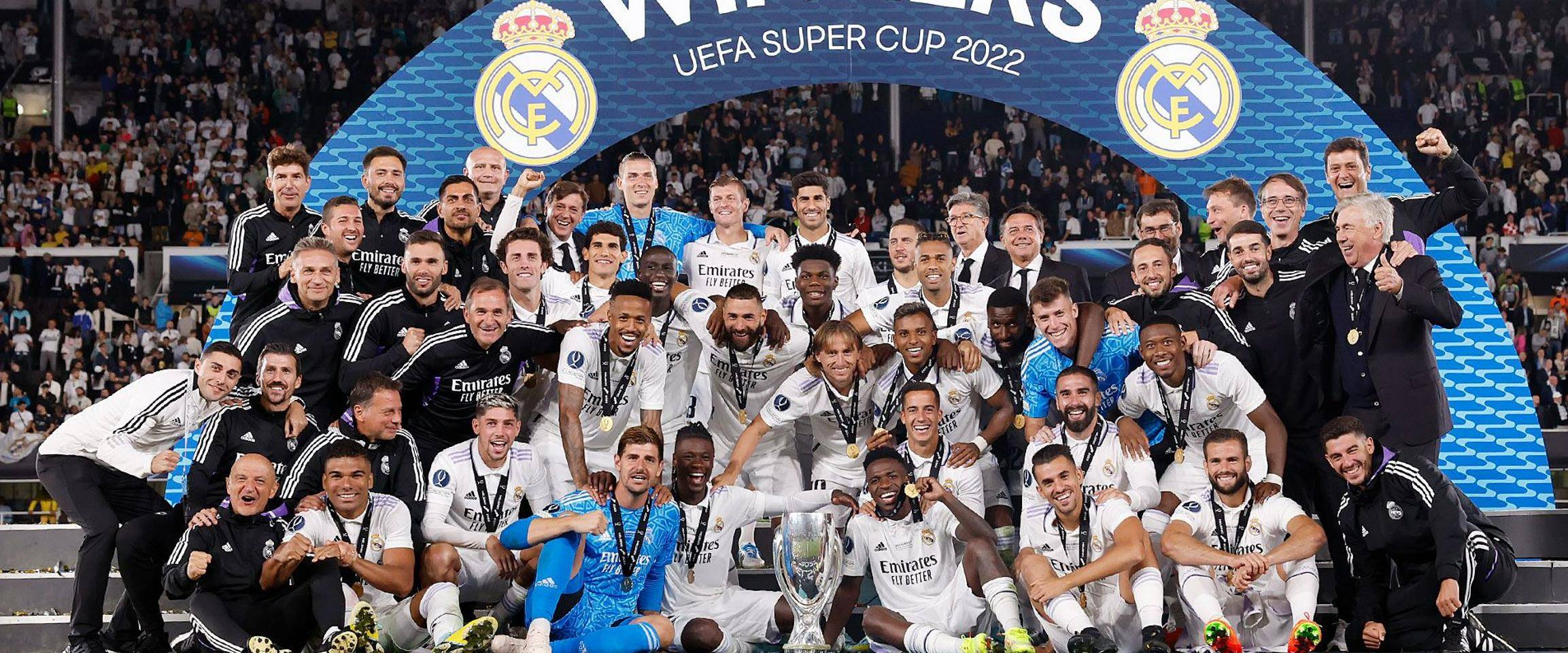 本泽马阿拉巴破门,皇马2-0法兰克福夺得2022欧超杯冠军!北京时间8月11日3:00欧超杯决赛,皇马在赫尔辛基迎战上赛季欧联杯冠军法兰克福。此役皇马沿用了上赛季欧冠决赛的首发阵容。第12分钟,法兰克福发动反击,对方越位位置劲射攻门,库尔图瓦神勇扑出。第14分钟,库尔图瓦侧扑化解镰田大地单刀威胁。第17分钟,巴尔韦德右路精准传中,本泽马禁区内横敲,威尼修斯领球绕过门将特拉普之后的推射被防守球员门线解围。第24分钟,对手左路发起进攻,米利唐禁区内做出关键防守。第37分钟,威尼修斯前场与本泽马打出二过一配合后内切射门被特拉普指尖挡出。短短1分钟内,皇马获得角球机会,禁区内本泽马中路抢点头槌,卡塞米罗底线附近头球回做,阿拉巴门前轻松推射破网!皇马1-0法兰克福。