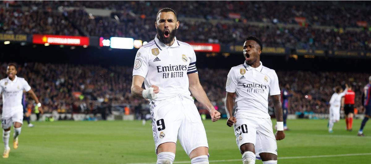 本泽马戴帽,皇马4-0巴萨晋级国王杯决赛国王杯半决赛次回合中,皇马在客场4-0击败巴萨,总比分4-1晋级本赛季国王杯决赛。威尼修斯首开纪录,本泽马上演帽子戏法。本场比赛,第12分钟,巴尔韦德发动反击,罗德里戈右路横传,威尼修斯门前包抄抢点被阿劳霍破坏。第24分钟,威尼修斯左路外脚背传中被特尔施特根双拳击出,莫德里奇随后的射门被挡。第33分钟,克罗斯前场左侧起球,本泽马右侧底线处回做被对方门将扑住。第46分钟,本泽马右路倒三角回做,威尼修斯打门击中孔德后皮球变线滚入球网,皇马客场1-0领先!
