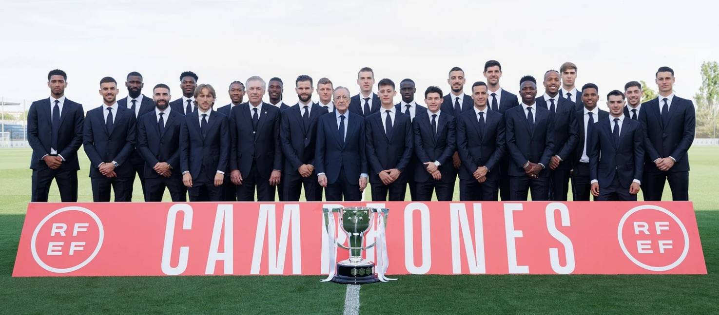 皇马全队在皇马体育城中接过了第36座西甲联赛冠军奖杯。队长纳乔·费尔南德斯从西班牙足球联合会主席佩德罗·罗查手中接过了奖杯。在接过奖杯后,纳乔接受了皇家马德里电视台的采访,并表示:“在这个俱乐部赢得奖杯是特别的,而赢得联赛则更加特别。这是对整个赛季付出的回报。我们整个赛季的表现都很棒,现在我们把冠军带回家了。今天将是美好的一天。”