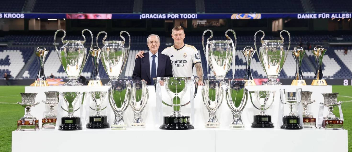 皇马在本赛季西甲收官战中主场0-0战平贝蒂斯,最终我们收获了本赛季的西甲冠军,本场比赛克罗斯也迎来了自己个人在伯纳乌的告别战。迄今为止,克罗斯在效力皇马的十年间共夺得22座冠军奖杯,他在赛后也向皇马主席弗洛伦蒂诺致以问候:“感谢我最亲爱的主席,感谢你做的一切。”