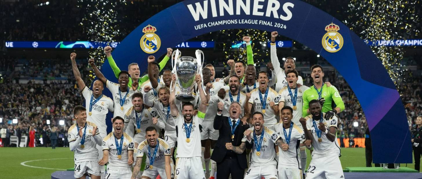 第49分钟,皇马在禁区左侧获得定位球机会,克罗斯主罚直接攻门被科贝尔扑出;随后卡瓦哈尔在角球中头球攻门顶高。第57分钟,威尼修斯左侧内切传中,卡瓦哈尔后点凌空打门被扑。第74分钟,克罗斯左侧角球发出,卡瓦哈尔头球破门!!!皇马1-0领先!!!第77分钟,卡马温加底线倒三角回做,贝林厄姆的推射打在对方球员身上折射出底线。第82分钟,克罗斯左侧角球开出,纳乔头球攻门被科贝尔飞身扑出。第83分钟,贝林厄姆前场抢断后分球,威尼修斯左侧轻松推射得手,皇马2-0领先!!第87分钟,菲尔克鲁格头球破门,但越位在先,进球无效。全场结束,皇马2-0击败多特蒙德,成功夺得队史第15座欧冠冠军!!!!