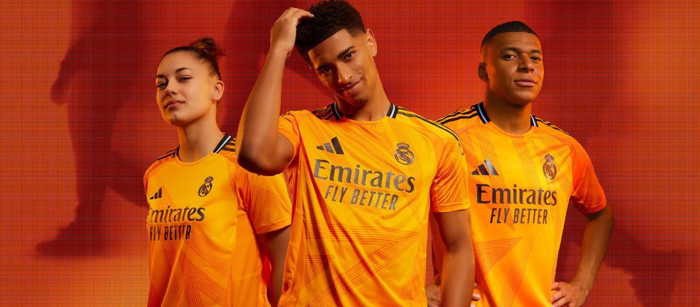 皇家马德里与阿迪达斯发布了2024/25赛季的客场球衣。新球衣以橙色为主色调,并带有星空图案,这一图案在球衣上以更浓烈的色调展现。衣领细节、阿迪达斯标志、俱乐部徽章、赞助商标志以及肩部的三条杠都采用了夜空的颜色,通过不同深浅的蓝色表现出来。