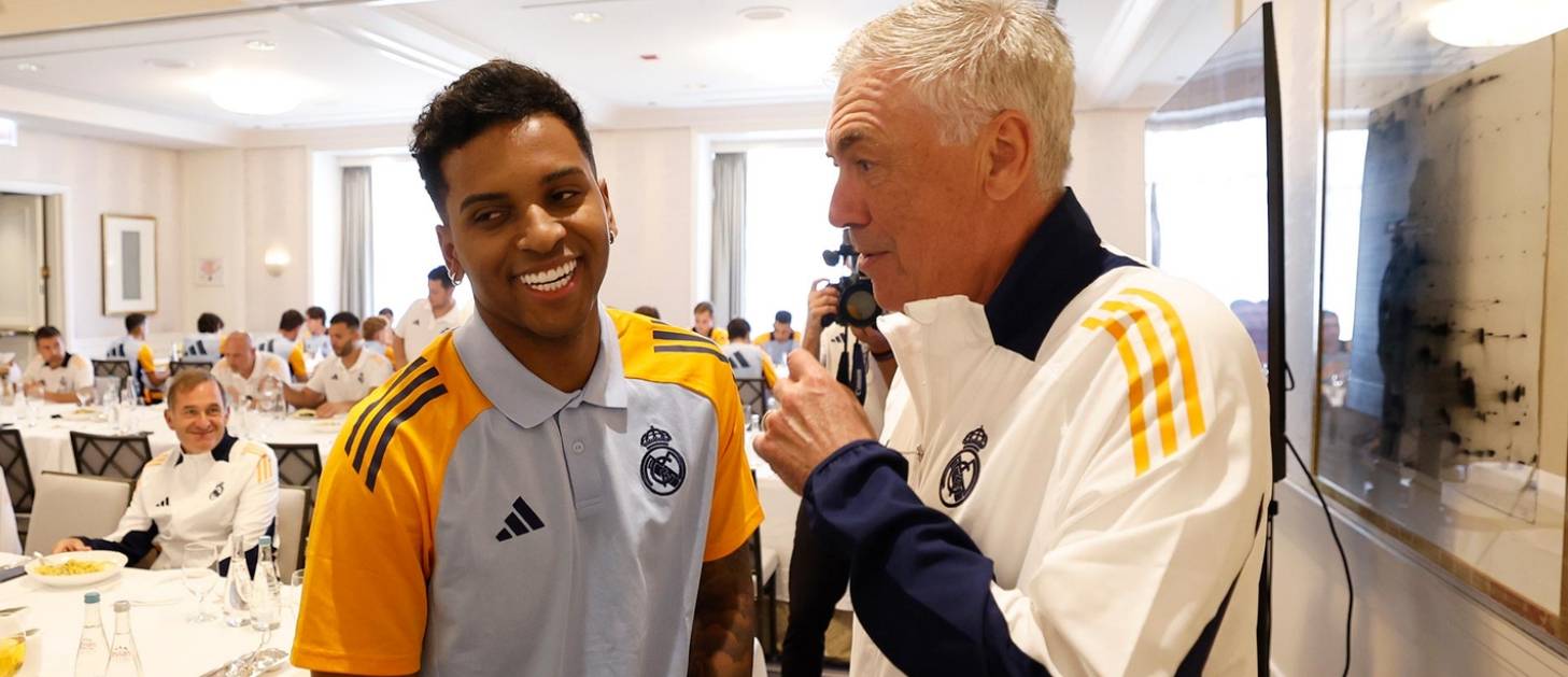 罗德里戈与皇马全队在芝加哥汇合。在皇马与AC米兰的热身赛前,罗德里戈抵达了皇马在芝加哥下榻的酒店,与全队汇合,并与队友、教练组及工作人员拥抱致意。