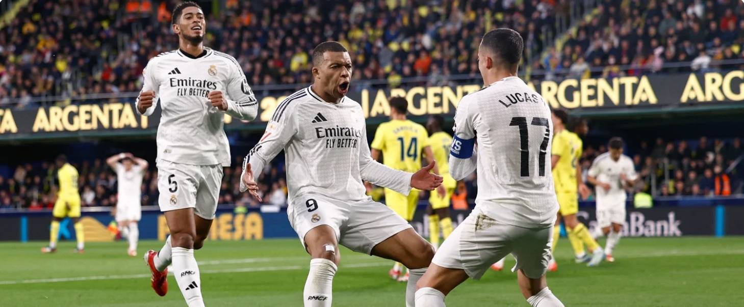 姆巴佩梅开二度,皇马2-1比利亚雷亚尔