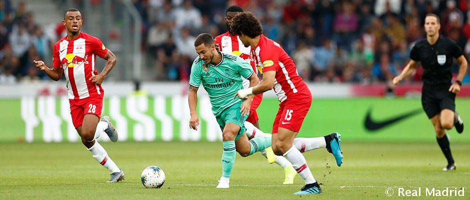 阿扎尔的精彩进球帮助自己打开进球账户阿扎尔在皇马战胜萨尔茨堡红牛的比赛中发挥了关键的作用,比利时人打进了代表皇马的首粒进球,并且帮助球队在红牛体育场带走一场胜利。阿扎尔在赛后接受采访:“在场上你想赢得比赛,作为前锋,你想取得进球。我在前五场比赛中一直等待这一时刻的到来,现在(进球)终于来到了。我很开心。”