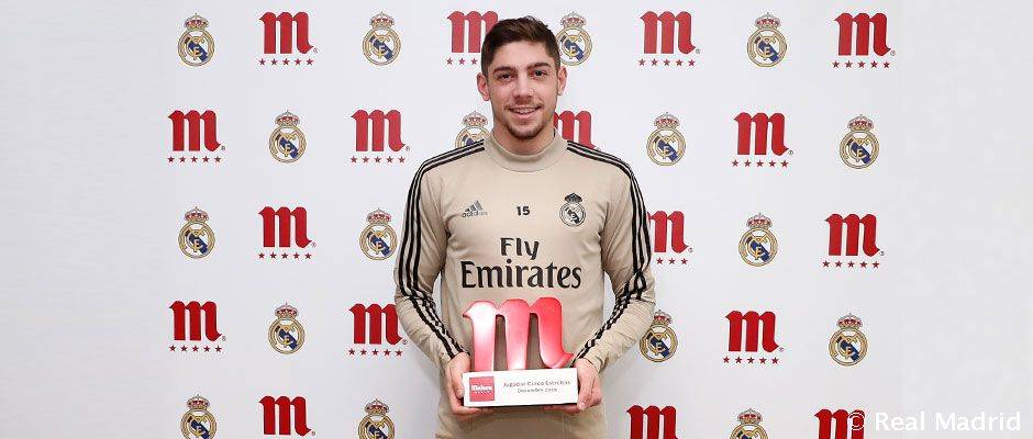 12月最佳球员:巴尔韦德费德里科·巴尔韦德被Mahou五星评选为了皇马12月最佳球员,乌拉圭中场在皇马体育城接受了奖杯,以表对其在去年12月表现的认可,他在上个月打满了球队的五场比赛。