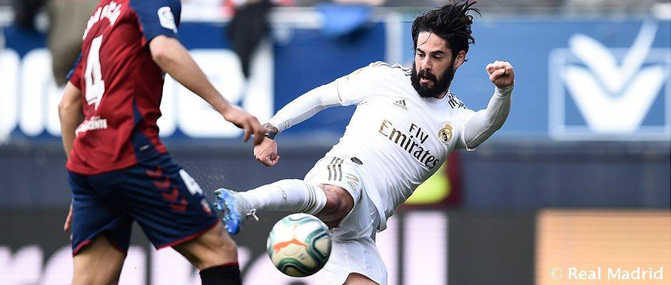 伊斯科收获个人皇马生涯第50球伊斯科在对阵奥萨苏纳时收获了个人皇马生涯第50球,马拉加人在2013年8月18日对阵贝蒂斯的比赛中迎来皇马首秀,他已经为球队效力7个赛季,出场297次。