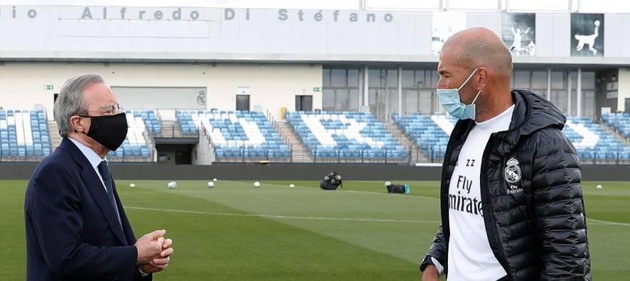 皇马主席弗洛伦蒂诺来到迪斯蒂法诺球场探望了皇马全队。他先是在训练前问候了球员和教练组,随后又向大家表达了美好祝愿,希望球队能在西甲复赛后拿出好的表现。与弗洛伦蒂诺一同到来的还有皇马CEO赫塞·安赫尔·桑切斯。