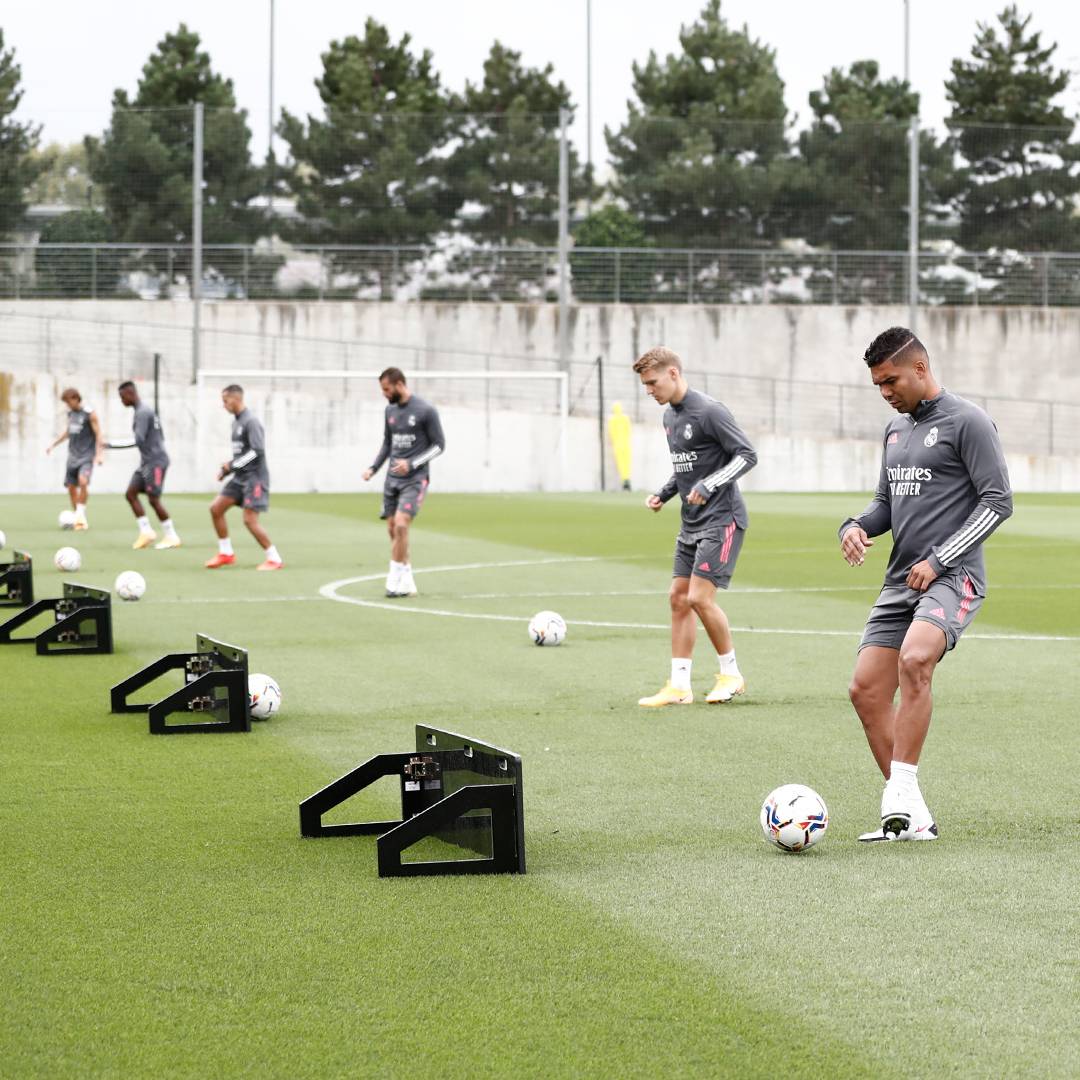 球队在皇马体育城完成了本周第二堂训练课 队员们在2号和3号场地上进行了体能训练,随后分别进行有球和无球训练,最后进行了控球、带球和射门练习 马里亚诺和卜拉欣进行了室内训练,塞瓦略斯在草坪上进行了单人训练