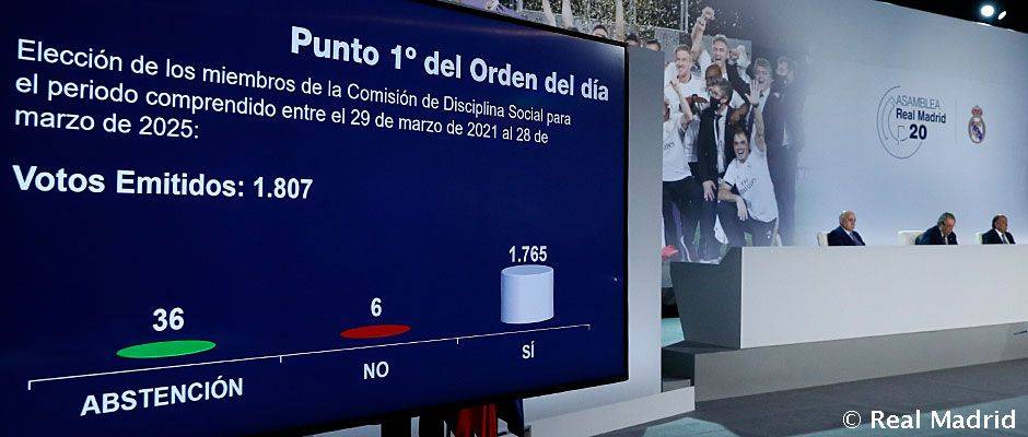 皇家马德里特别会员大会就两大提案给予批准随着线上会员大会的结束,皇马特别会员大会于近日召开。俱乐部代表成员在会上批准了选举委员会和社会纪律委员会成员的选举请求,任期为2021年3月29日至2025年3月28日。