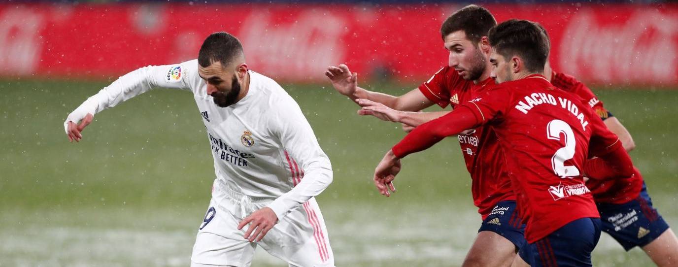尽管皇马本场比赛占据优势,但明显的机会并没有在开局后迅速到来。比赛第30分钟,奥萨苏纳率先制造威胁,鲁文·加西亚开出角球尝试寻找队友,但皮球被库尔图瓦率先破坏。2分钟后,皇马做出回应,莫德里奇的外脚背攻门迫使对方门将埃雷拉做出扑救。