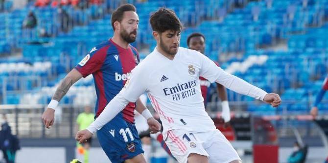 在随后的比赛中,皇马不得不以10人应战,但比赛第13分钟,皇马取得领先。在一次角球防守中,克罗斯得球后送出一脚精准直塞球,阿森西奥带球至禁区后右脚推射得手,1-0。随后,莱万特发动反击,但两次高质量的射门均被库尔图瓦化解。第25分钟,罗格禁区内打门,皇马门将做出精彩扑救。3分钟后,皇马发动反击,卡塞米罗送出长传球,阿森西奥接球后直接打门,但被对方门将挡出。
