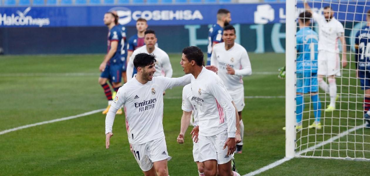 易边再战,韦斯卡率先抓住机会,加兰帮助主队取得领先。随后米克尔·里科和拉法·米尔相继击中立柱。但皇马并没有放弃,阿森西奥在一次突破中被放倒,我们获得前场任意球,本泽马的打门击中立柱后反弹至门前,瓦拉内机敏跟进用头将球顶进,1-1,皇马扳平比分。比赛第60分钟,阿森西奥连续过人后起脚打门被对方门将扑出。随后,面对拉法·米尔极具威胁的头球攻门,库尔图瓦做出了世界级扑救。