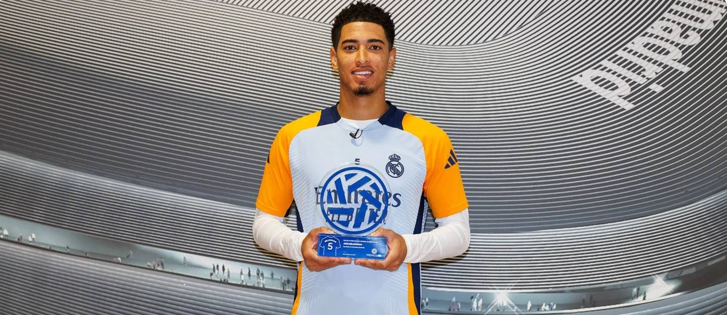 贝林厄姆在西班牙球员工会(AFE)颁奖典礼的第三届活动中获得了嘉奖。颁奖典礼在马德里的拉斯本塔斯斗牛场举行。这位英格兰中场球员被评为2023/2024赛季西甲最佳球员奖,他在为皇家马德里出战的28场比赛中打入19球并贡献了5次助攻。 在领取这一由球员投票选出的奖项后,贝林厄姆表示:“非常感谢大家投票让我成为上赛季的AFE最佳球员,我感到非常自豪。”
