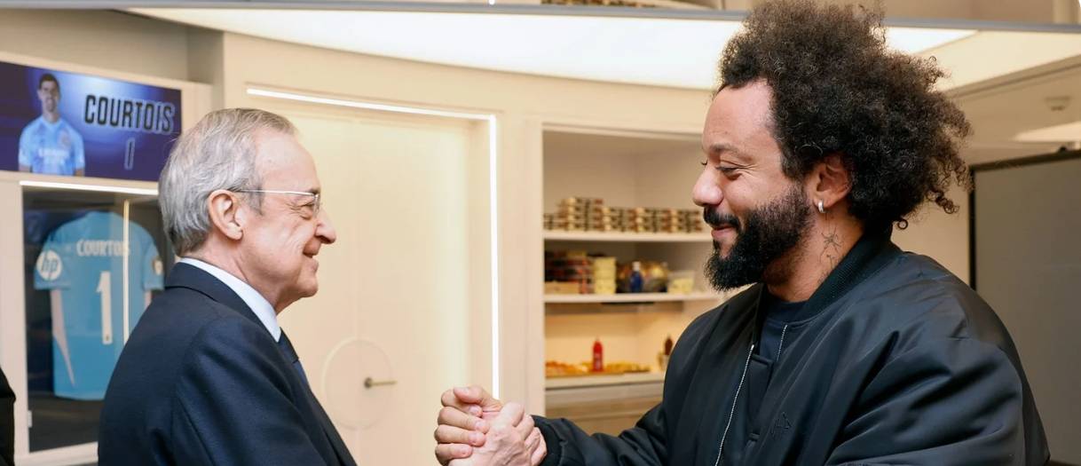 皇家马德里传奇球星马塞洛现身圣地亚哥伯纳乌球场,观看了皇马战胜塞尔塔并成功晋级国王杯八强的比赛。这位在皇马期间斩获25座冠军奖杯的传奇球员,在赛后前往更衣室,与俱乐部主席弗洛伦蒂诺·佩雷斯及主帅安切洛蒂会面,并向球队球员送上祝贺。