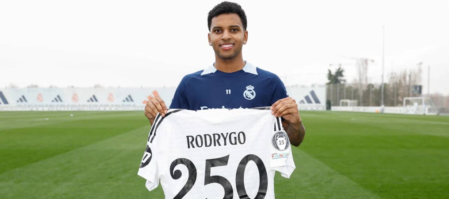 目前是罗德里戈在皇马的第六个赛季,他的出场次数达到了 250 场,截止目前他已经赢得了 13 项冠军:2 个 欧洲冠军联赛、2 个 世俱杯、2 个 欧洲超级杯、 3 个 西班牙联赛、1 个 国王杯 和 3 个 西班牙超级杯。