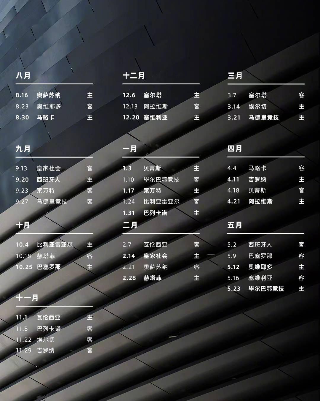 2025/26赛季西甲赛程公布