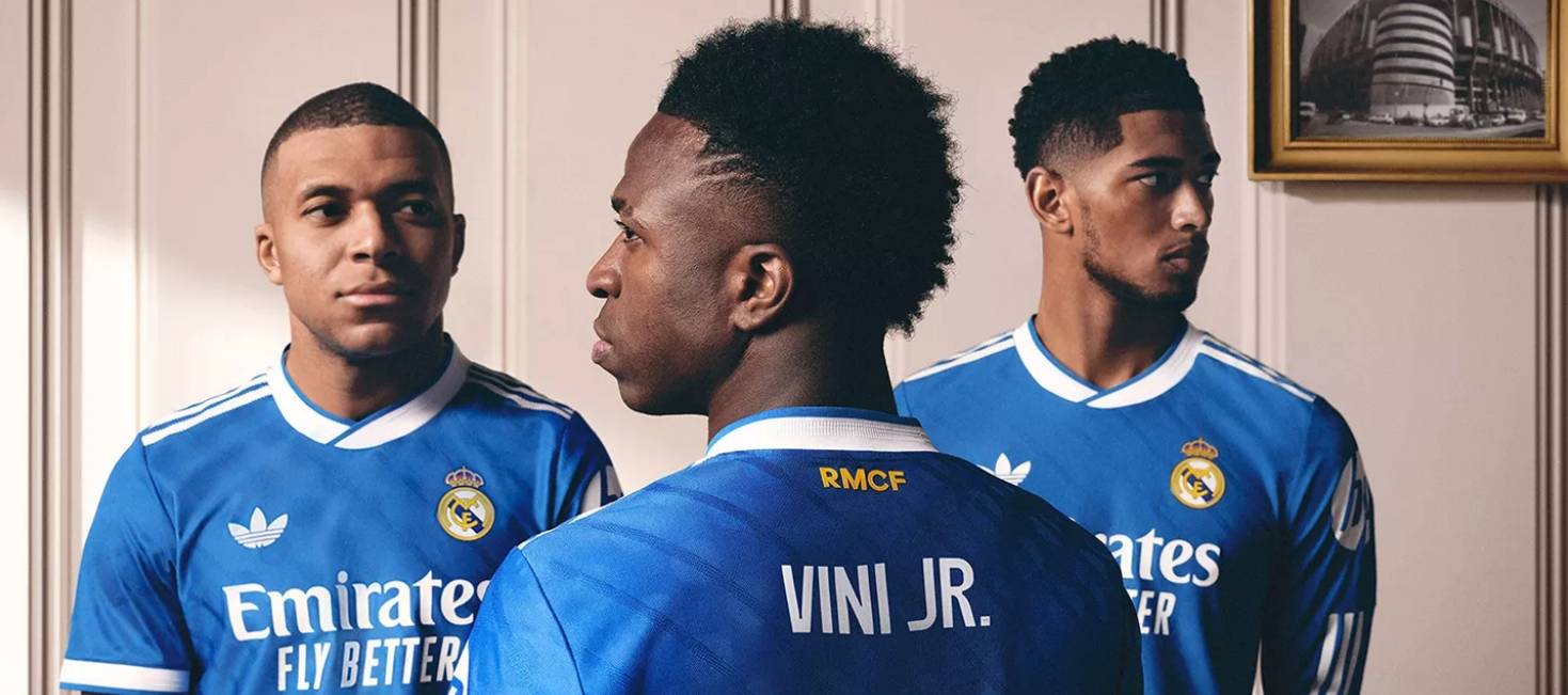 皇家马德里2025/26赛季二客球衣发布皇马与阿迪达斯正式发布2025/26赛季第三客场球衣。整体为蓝色设计,灵感源自伯纳乌球场的看台配色,搭配白色细节,并首次将adidas Originals的标志性“三叶草”徽标融入其中,呈现出皇马与阿迪达斯品牌基因的完美融合。