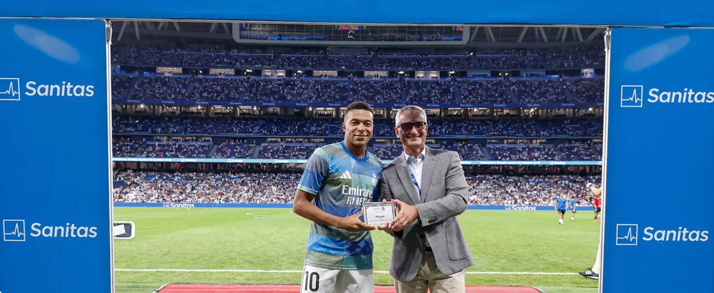 在对阵马略卡的伯纳乌比赛开始前,Sanitas Dental 总经理赫苏斯·博尼利亚向姆巴佩颁发了纪念牌。法国前锋在俱乐部社交媒体平台的球迷投票中获得最高票数,成功当选为皇家马德里2024/25赛季的“最健康球员”。这一评选活动源自皇马与其官方医疗合作伙伴 Sanitas 的合作。