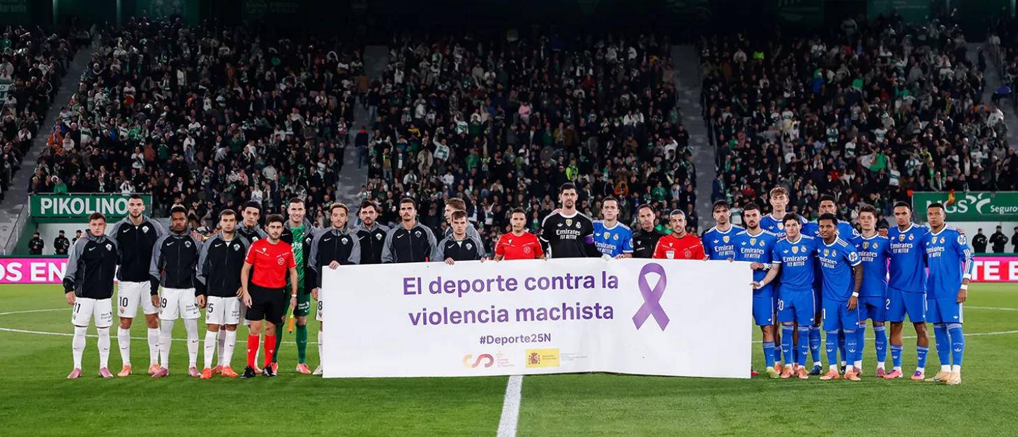 为纪念11月25日“国际消除对妇女暴力日”,皇马与埃尔切共同参与了由西班牙高等体育理事会发起的“体育界共同反对性别暴力”公益活动。 比赛开始前,马丁内斯·巴莱罗球场的草坪中央展开了一幅巨大的主题横幅。同时,双方队长也佩戴了特别制作的纪念袖标,以示支持。