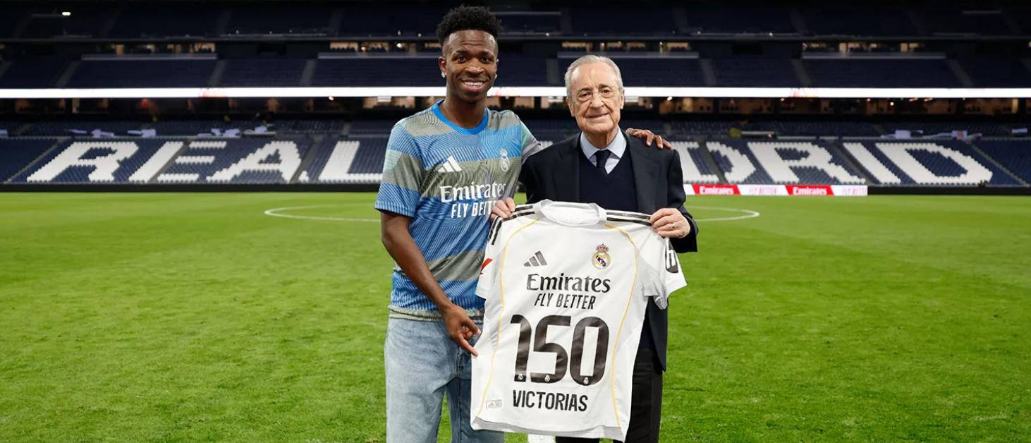 威尼修斯收获西甲150场胜利威尼修斯在伯纳乌对阵贝蒂斯的5-1大胜中,迎来了自己作为皇马球员在西甲的第150场胜利。这位巴西前锋目前正迎来效力俱乐部的第八个赛季,已代表皇马在西甲出场225次。自2018年9月29日对阵马德里竞技的德比战完成联赛首秀以来,威尼修斯在西甲赛场已打入66球,并随队三次夺得联赛冠军(2020、2022、2024)。在所有对手中,他面对塞尔塔取得的联赛胜场最多,达到11场;而他个人联赛胜场最多的赛季是2021/22赛季,共25场胜利。
