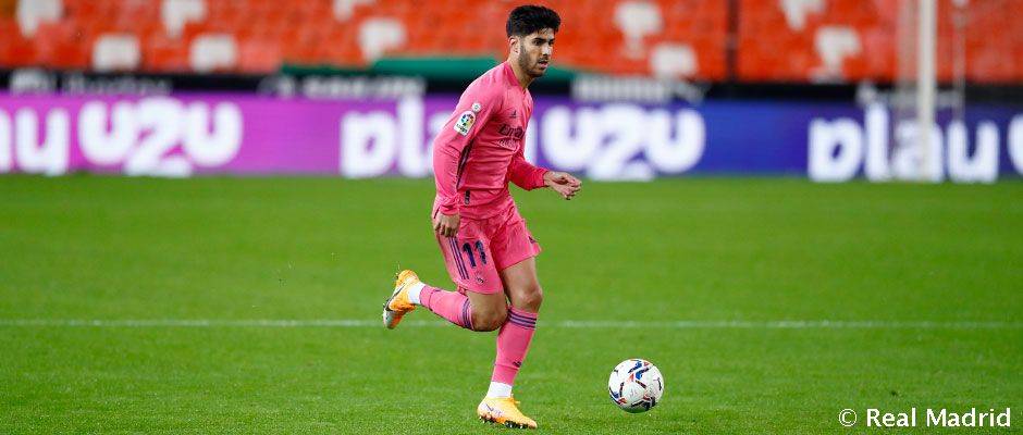马尔科·阿森西奥在对阵瓦伦西亚的比赛中收获了他为皇马效力的第100场西甲联赛,这位前锋在他效力皇马的第五个赛季迎来了这项里程碑,他在西甲中获得了65场胜利并打入16球。这五年里他赢得了11项冠军:两个欧冠,三个世俱杯,两个欧洲超级杯,两个西甲联赛冠军和两个西超杯。